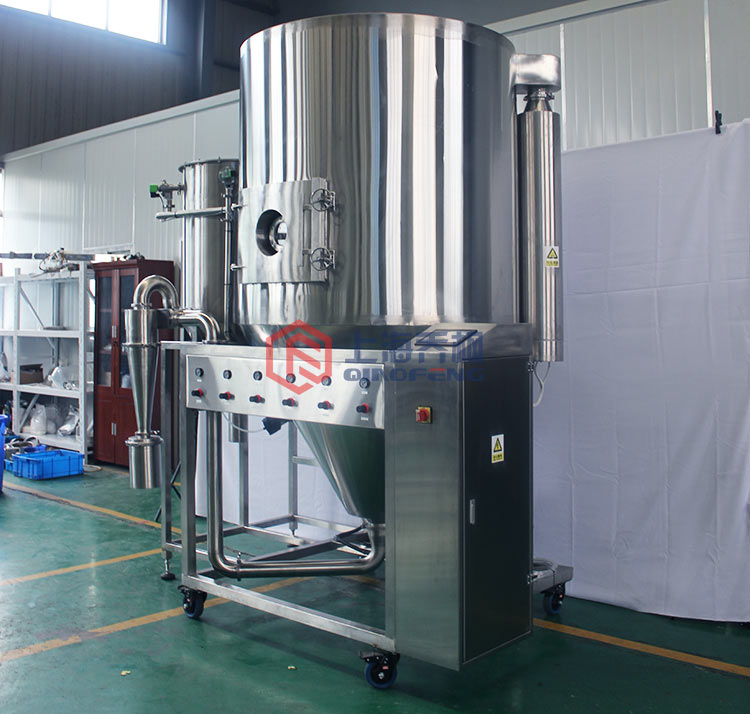 生產過程簡化,操作控制方便。對于含濕量40—60%(特殊物料可達90%)的液體能一次干燥成粉粒產品,干燥后不需粉碎和篩選,減少生產工序,提高產品純度。對產品粒徑,松密度,水份,在一定范圍內可通過改變操作條件進行調整。