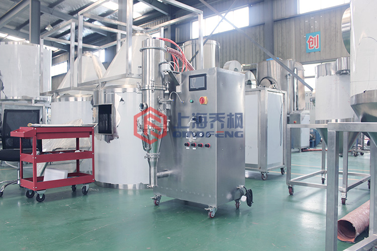 空氣經(jīng)加熱、凈化后,由引風(fēng)機從下部引入,經(jīng)漏斗的孔板篩板。在工作室內(nèi),通過攪拌和負壓形成流化。在快速蒸發(fā)后,水被廢氣帶走,材料很快干燥。